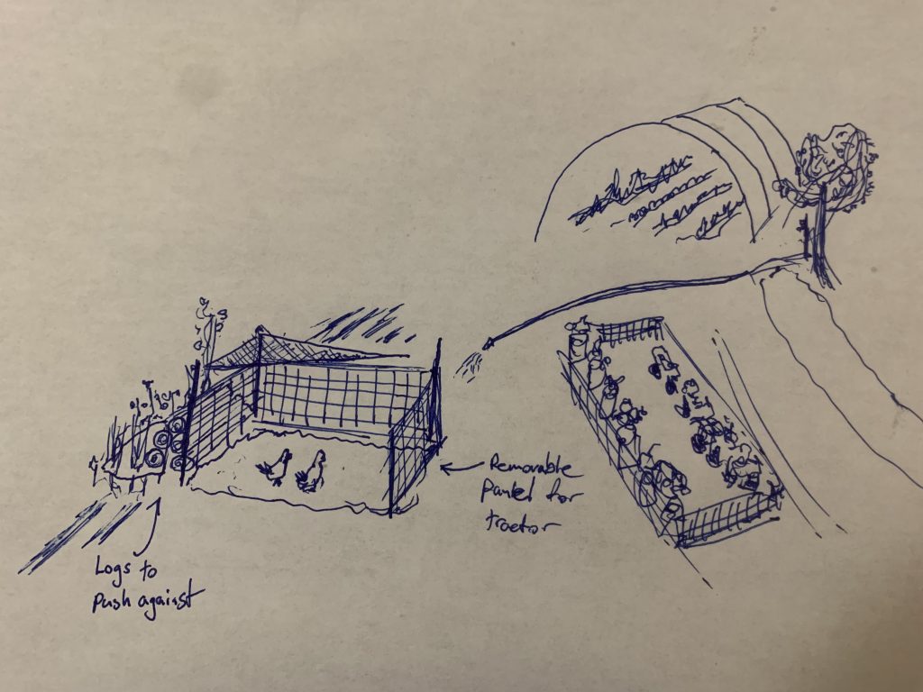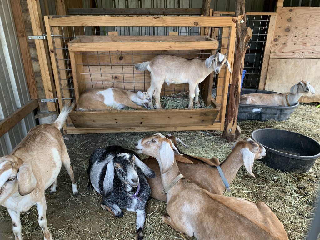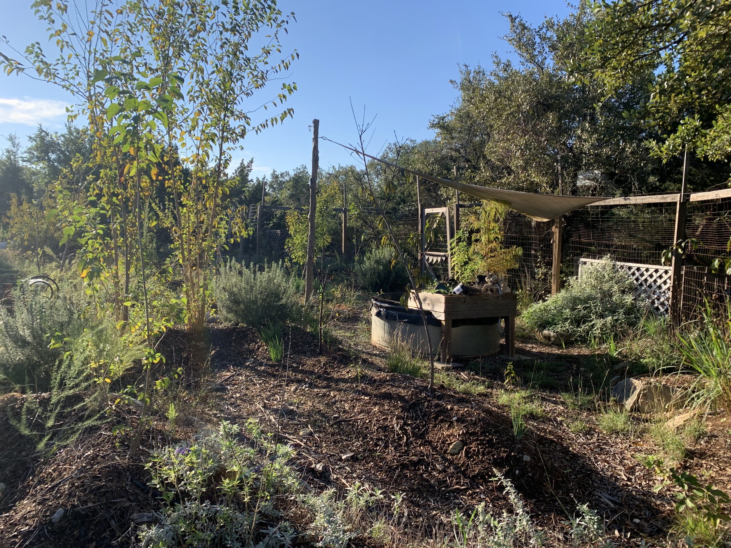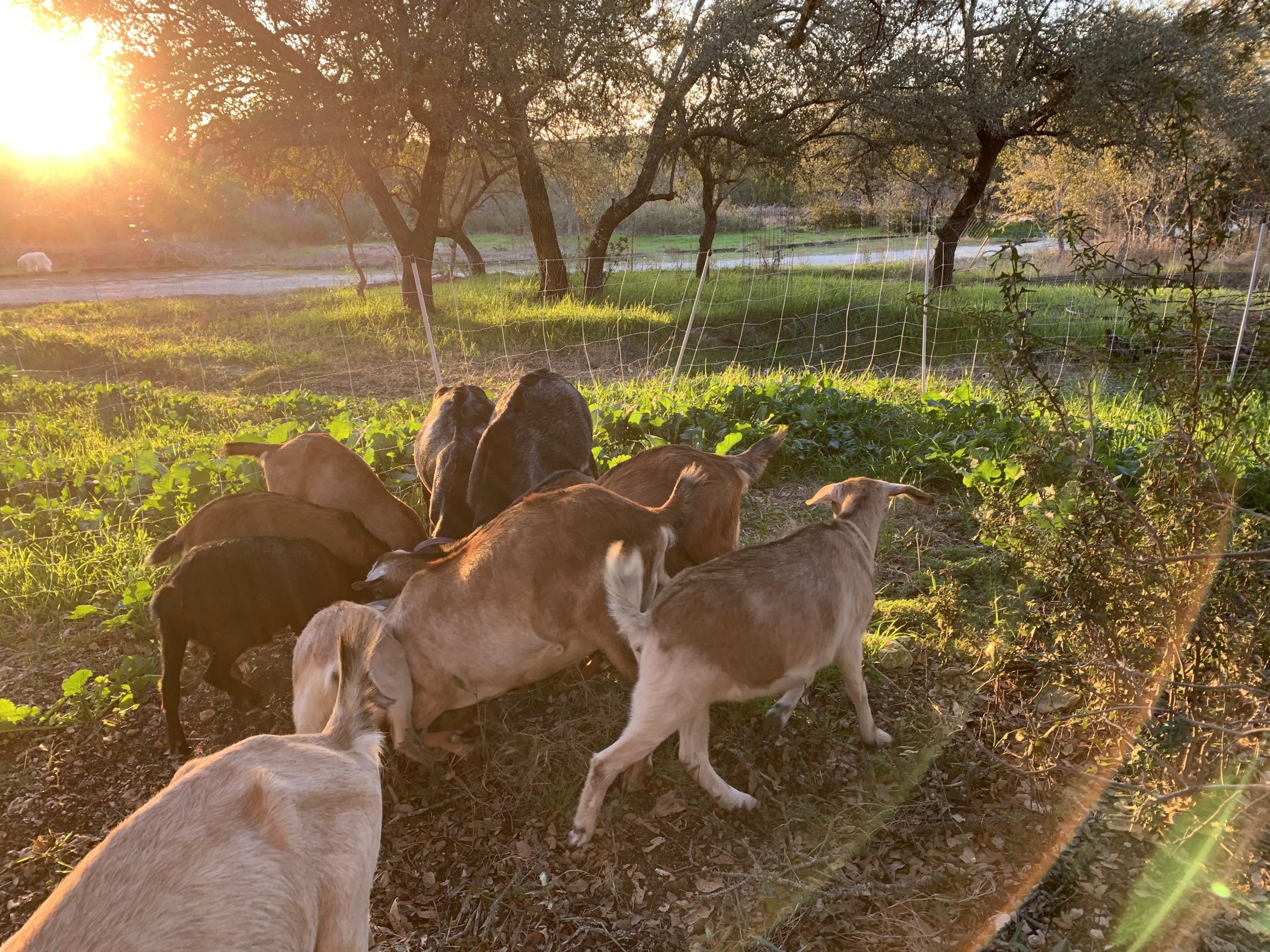 The property features integrated systems with milking and meat goats, chickens for eggs and meat, bees, trees, flowers and veggies. At our working family homestead, we are positioned at the top of a large limestone hill with heavily eroded soils we are regenerating. We capture rainwater for garden use, and have implemented many swales (ditches on contour), and brush berms. We planted a food forest, and delight in it’s growth and abundance every year. Our once small garden has turned into an expansive operation where we make our own soil on site through a deep bedding method with our milking goats and chickens, when they are not rotating through the land.