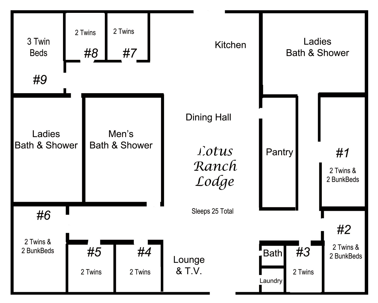 The Lodge has 25 twin beds total